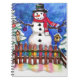 Original Aquarellmalerei von Sandra Gale eines glücklichen Schneemanns in einem schneebedeckten Wintergarten. Großartiges Design für Gärtner, Kinder, Mamas und alle, die Schneemänner und Landgartenszenen mögen.