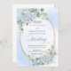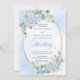 Make your special day unforgettable with this elegant watercolor wedding invitation, thoughtfully designed to shine with Zazzle’s premium print quality. Featuring soft pastel blue hydrangeas, delicate eucalyptus and greenery foliage, and a refined gold glitter oval frame, this invitation blends timeless romance with modern sophistication.