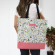 Eigene Allover-Tasche personalisiert mit Ihrem Monogrammnamen oder anderen Texten. Dieses niedliche mädchenhafte Design zeichnet sich durch ein skurriles Blumenmuster in den Farben Korallen, Grün, Aqua und Gelb aus. Verwenden Sie die Designtools, um die Monogramm-Schriftart und -Farben zu bearbeiten oder Ihre eigenen Fotos hochzuladen.