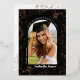 Diese elegante Ankündigung des Abschlusses zeigt ein bogenförmiges Foto auf schwarzem Hintergrund mit Gardenia-Blumenmustern auf Goldfolie der echten Rose. Personalisieren Sie es für Ihre Bedürfnisse. In meinem Geschäft finden Sie passende Produkte.