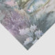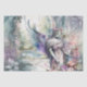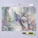 Rosa und lila Aquarellbilder eines Engels mit Blume vor einem Gartenteich