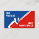 Blauer und roter Sportschutz mit Heckenschneider und Schere. Einzigartiger und kreativer Stil für Landschaftsbau, Gartenpflege, Rasenmäher und andere verbundene Unternehmen.