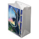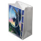 Gargoyle Guardian Art von Traci Van Wagoner druckt, posters, accessoires und gifts zeigt einen blau-grauen Steingargoyle, der Sie von seiner Terrasse hoch über der Stadt am frühen Morgen mit einem strukturierten Sonnenaufgang aus gelb, orange, rosa, violett und blau anschaut. Holen Sie sich heute einen Gargoyle-Wächter, um eine Uhr für Sie behalten.