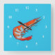 Eine große Walluhr mit einer originalen Abbildung eines rosa Garnelen oder Garnelen vor einem anpassbaren hellblauen Hintergrund. Dieses niedlich angesagte, kitschige Meeresfrüchte-Design würde in einer Küche wunderbar aussehen.