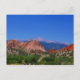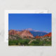 Ich machte dieses Foto des Gartens der Götter, gerade zwei Tage bevor das Waldo Schlucht-Feuer in Colorado Springs, Colorado im Juni von 2012 anfing. Die Himmel waren ruhiges, klares und cerulean Blau. Der Kontrast des Rotes schaukelt gegen die grünen Pflanzen, weg überstiegen mit dem blauen Himmel und Spiesse ragen in den Hintergrund schaffen ein atemberaubendes Bild empor. Die natürliche Flora und die Fauna der Landschaft stellen ein auffallendes Foto mit vibrierender dennoch natürlicher Farbe her. Wenn Sie dieses Bild mögen, nehmen Sie einen Blick an anderen Produkten in meinem Pictimilitude Speicher mit diesem gleichen Bild. Passen Sie diese Postkarte mit zusammenpassenden Briefmarken und Umschlägen zusammen.