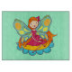 Eine hübsche Gartenfee mit einem rosa Kleid und einem flüssigen orange Haar sitzt auf einer großen Blume von Blauem und gelb, Mädchen eines sind niedliche Entwurfs alles Alters zur Liebe sicher! Garten-feenhafte T - Shirts, Bodysuits, Schellfische, Decken, Karten, Tassen, Taschen, Aufkleber, Andenken, Knöpfe, Magnet-, Schlüsselketten, mousepads und soviel mehr!