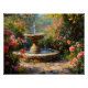 Garten mit blühenden Rose und Wasserbrunnen Poster