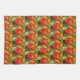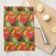 Hier befindet sich ein Garten mit roten und orangefarbenen Blumen auf einem Küchentuch