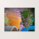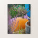 Gartenleben mit sonniger Orangenkürbis und lila Blume. Gutes Geschenk für Feinschmecker, rustikalen Stil und Gärtnern.
