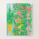 Ein buntes Puzzlespiel, das drei Mädchen trinken Tee im Garten an einem warmen Frühlingstag mit hellen blühenden Blumen, warmem Sonnenschein und glücklichen einem Hund illustriert mit Tinte und Watercolor kennzeichnet.