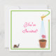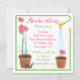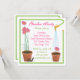 Niedliche kleine Schnecken- und Blume-Töpfe mit rosa Gänsebläschen und einem Wasserschlauch bilden einen Rahmen für diese elegante und dennoch unterhaltsame Party Einladung. Ideal für ein Brautparty oder ein Mittagessen. Handgezeichnete Abbildung von McBooboo.
