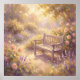 Dieses impressionistische Gemälde fängt einen stillen Gartenweg ein, an dem eine Holzbank zwischen blühenden Wildblumen und Grün ruht.