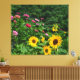 Gartenblick Blumengarten, Gänse, Sonnenblumen Leinwanddruck