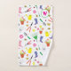 Farbiges Handtuch für Gärtner, Botaniker, Besitzer von Wohnungen und Gartenbauer. Es enthält ein Muster von Gartenwerkzeugen und -ausrüstung und einen Raum, um den Monogramm-Buchstaben Ihrer Wahl hinzuzufügen.