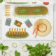 Handgezeichnetes Design mit verschiedenen Gartengegenständen.