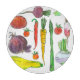 Ein helles und farbenfrohes Schneidebrett, das mit einer Gemüseernte dekoriert ist, die Tomaten, Karotten, Spargel und mehr in Stift und Tinte gezeichnet und mit Aquarellfarben mit weißem Hintergrund gestrichen wurde. Farbenfrohe Dekoration für die Küche, wenn nicht in Gebrauch oder ein gutes Geschenk für einen Gärtner! Das Design stammt aus meinem Farbbuch "Lila's Garden: Ein Hütte Gartenfarbbuch, das auf Amazon zu finden ist.