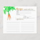 Eine Aquarellbild zeigt eine Rezeptionskarte, die mit einem Haufen Karotten geschmückt ist. Dieses reizvolle Design ist für Gärtnerfreunde und für diejenigen, die sich an den Rezepten der Ansammlung erfreuen.
