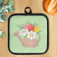 Gartenwasserdose mit Blume auf Grün Topflappen