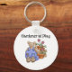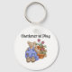 Ein Teddybär in blauen Bärenüberhängen neigt zu seinen Blume in Tontöpfen und Text liest "Gardener at Play" auf Gärtnerischen T - Shirt, Tasse, Totentaschen, Mousepads, Aufkleber, Knöpfe und anderen Gegenständen.