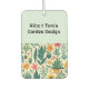 Werben Sie Ihr Geschäft mit Ihrem personalisierten Auto-Lufterfrischer. Fügen Sie Ihren Firmennamen auf der hellgrünen Vorderseite, über der Abbildung der Gartenanlage Pflanze und Blume. Die Rückseite des Lufterfrischers ist grün mit Ihrem Firmennamen wie zuvor, mit einem QR Barcode für Sie, um mit Ihrer Website URL anpassen. Passagiere, die Ihren Lufterfrischer in Ihrem parkierten Auto oder Transporter sehen, können den Code scannen, um mehr zu erfahren. Eine einfache, moderne und tragbare Art, Ihr Geschäft, Ihre Organisation oder Ihre Sache zu fördern.