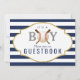 Baseball Boy Modern Navy Blue Stripes Baby Shower Guest Book Sign.