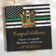 Dünne Green Line Military Retirement Guest Book. Feiern Sie Jahre des engagierten Dienstes, Ihre militärische Rente und laden Sie Freunde und Familie zu Ihrem militärischen Party mit dieser rustikalen Thin Green Line Flag mit Gold Army Boots Military Retirement Einladung. USA Fahne Design in Polizei Flag Farben, getragen schwarz grün weiß und Gold Design. Diese militärische Einladung ist auch ideal für militärischen Abschluss, Soldaten, die einen Teil weggehen, Stationierungen und Heimkehr, Umzugsplatz für Personalisierung. Sehen Sie sich unsere Kollektion an, um die Geschenke für den militärischen Ruhestand, militärische Ruhestandsalter und Gastgeschenke und Lieferungen zusammenzustellen. COPYRIGHT © 2021 Judy Burrows, Black Dog Art - Alle Rechte vorbehalten. Gästebuch-Notebook für militärische Thin Green Line