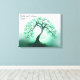 Gäste der Hochzeitsfeier oder der Verlobungsfeier können diesen grünen Baum des Lebens in gepackten Leinwänden unterschreiben. Anstatt das Gästebuch in einem Schrank zu speichern, können Sie diese Leinwand mit den Unterschriften aller Ihrer Familie und Freunde anzeigen. Perfekter Sake-Kunst. Der Baum des Lebens in einem grünen Nebel mit dem Mond, der durch den Mond guckt. Es ist ruhig und schön, es steht für immer in Ruhe.