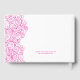 Strandstar / Seesterne-Line-Kunst und wirbelnde Wellen lassend Urlaubsbuchung in heißen, leuchtend rosa und kontrastierenden weißen Wellen. Ideal zum Vermieten oder Vermieten von Immobilien oder Zuhause am Meer, um Rückmeldungen von Kunden zu erhalten und Ihren Gästen ein interessantes Buch zu geben, das Sie sich ansehen können. Passen Sie auf Ihren Firmennamen und Ihre Gästebuchnachricht in diesem Gästebuchdesign im Strandmeerstil an. Ideal für Ferien lassend Unternehmen und Zuhause an der Küste oder am Meer zu mieten. Aktuell liest Seastar Beach Villas Pension sind unsere Gäste verlass uns eine Nachricht. © Original design and artwork by Sarah Trett. www.sarahtrett.com für www.mylittleedenweddings.com