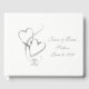 Dieses Gästebuch wird in Weiß mit einem hübschen Zweiherzen-Druck mit benutzerdefinierten Beispielnamen gezeigt. Passen Sie dieses Buch an und ändern Sie den Text in Ihren Text.