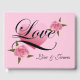 Dieses Gästebuch wird in Rosa mit hübsch rosa Rosen und Liebe mit benutzerdefinierten Beispielnamen angezeigt. Passen Sie dieses Buch an und ändern Sie die Namen in Ihr Buch.