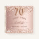 Ein Gästebuch für eine weibliche und glamouröse 70. Geburtstagsfeier. Eine stilvolle Rose Gold Imitate metallisch aussehend Hintergrund mit Imitate Glitzer Glitzern. Fügen Sie Ihren Namen, Text hinzu.