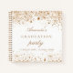 Ein stilvoller weißer Hintergrund mit dunklen Imitaten goldenen Glitzer Staub. Personalisieren und fügen Sie einen Namen und das Datum ein. Kann als Gästebuch oder Planung des Party verwendet werden.