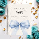 Beige, cremefarbene Hintergrundfarbe. Mit einem großen blauen Bogen dekoriert. Personalisieren und fügen Sie einen Namen, ein Datum.