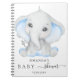 Ein Gästebuch mit Babydusche, das einen kleinen Jungen feiert. Ein stilvoller weißer Hintergrund mit einem niedlichen Elefantenjungen in Blau. Fügen Sie einen Namen und ein Datum hinzu.