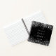 Ein stilvoller schwarzer Hintergrund mit Imitaten silber Glitzer Staub. Personalisieren und fügen Sie einen Namen und das Datum ein. Kann als Gästebuch, Planung des Party oder als Gastgeschenk verwendet werden.