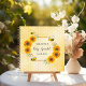 Elegantes, lustiges Sommerbaby sprinkle feiert ein kleines Mädchen oder geschlechtsneutral. Gelber, weißer Hintergrund mit Wabenmuster. vorne: Mit einem Imitat goldener geometrischer Rahmen. Gelbe und orangefarbene Sonnenblumen und glückliche Hummeln. Mit dem Text: Babydusche geschrieben mit einem modernen handgeschriebenen Stil. Vorlage für die Mami zu bestellen und ein Datum. Schwarze Buchstaben. Ideal sowohl für die Planung des Party als auch als Gästebuch.