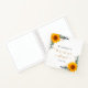 Eine weiße Hintergrundfarbe. Sie ist mit Sonnenblumen, Eukalyptuspflanzen und goldenem Blattwerk dekoriert. Fügen Sie einen Namen und ein Datum hinzu.