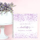 Ein stilvoller weißer Hintergrund mit violetten, lavendelfarbenen Imitaten Glitzern. Fügen Sie einen Namen und einen Text hinzu. Der Name wird mit einem modernen handgeschriebenen Stilskript mit Swashes geschrieben. Um die Swashes behalten, löschen Sie nur den Beispielnamen, verlass die Leerzeichen oder Emoji's vor und nach dem Namen.