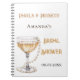Eine weiße Hintergrundfarbe. Dekoriert mit einem Glas glänzender Prosecco und Perlen. Fügen Sie einen Namen und ein Datum hinzu.