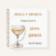 Eine weiße Hintergrundfarbe. Dekoriert mit einem Glas glänzender Prosecco und Perlen. Fügen Sie einen Namen und ein Datum hinzu.