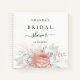 Ein eleganter weißer Hintergrund mit Rose, goldfarbenen und weißen Blumen, silberfarbenem Blattwerk. Personalisieren und fügen Sie Namen und Datum ein.