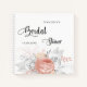 Ein eleganter weißer Hintergrund mit Rose, goldfarbenen und weißen Blumen, silberfarbenem Blattwerk. Personalisieren und fügen Sie Namen und Datum ein.