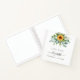 Ein weißer Hintergrund. Mit Sonnenblumen geschmückt und mit Eukalyptus-Pflanzen geschmückt. Fügen Sie einen Namen, ein Datum hinzu.