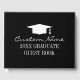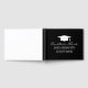 Kundenorientiertes Gästebuch für High School Abschluss. Elegante schwarz-weiße Designvorlage mit akademischem Logo. Lass Schülern und Gast schreiben ihre Kommentare. Klassische Schrift Typografie Vorlage. Farben können geändert werden.