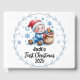 Mit diesem charmanten Gästebuch erleben Sie die Erinnerungen der ersten Weihnachtsfeier Ihres Babys. Ein süßes Baby neben Geschenken in einem blauen Design. Die Oberseite ist editierbar, um den Namen des Babys hinzuzufügen, sodass es ein perfekter Sake für Familie und Freunde ist, Nachrichten und Wünsche verlassen.