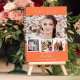 Erstellen Sie Ihre eigene, einzigartige Fotocollage. Verwenden Sie vier, vier Ihrer Lieblingsfotos. Personalisieren und einen Namen und Alter/Daten. Korallen, orange Hintergrundfarbe, weißer Text.