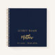 Ein Gästebuch für eine 50. Geburtstagsparty (oder jedes Alter). Ein dunkelblauer Hintergrund. Geben Sie Ihren Namen, Alter, Datum ein. Der Name ist mit einem modernen handgeschriebenen Stilskript geschrieben. Goldener Text.