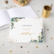 Eine weiße Hintergrundfarbe. Dekoriert mit Eukalyptusgrün, goldgelbem Blattwerk und Imitaten goldener Glitzer Staub. Geben Sie einen Namen, Alter und ein Datum ein. Spine: Fügen Sie Ihren eigenen Text hinzu.