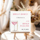 Eine weiße Hintergrundfarbe. Dekoriert mit einem Glas rosa glitzerndes Prosecco und Perlen. Fügen Sie einen Namen und ein Datum hinzu.