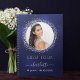 Ein Gästebuch für eine weibliche und glamouröse 21. Geburtstagsparty (oder jedes Alter). Ein stilvoller marineblauer Hintergrund mit Imitaten, Glitzern aus silberfarbenem Glitzer rund um das Foto. Die blaue Farbe ist ungleichmäßig. Geben Sie Ihren Namen, Alter 21, Datum und ein Foto.